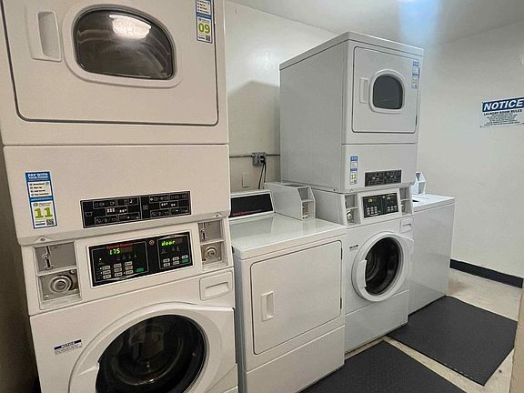 Central air, most units have Dishwasher and Stove, nice kitchen cabinets, laminate flooring throughout unit with a lot of natural light. Huge living room & separate dining area, large closets at entryway, wall to wall closets. Generous built in cabinets near bathroom. The building has a Laundry room on site and has gated Parking.