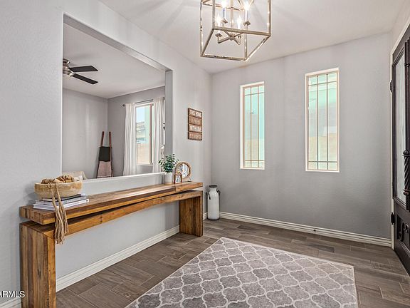 Welcome to this beautiful Morrison Ranch/LVT North home nestled in the heart of Gilbert. The iconic neighborhood is a standout with tree lined streets, lakes, greenbelts, parks, pickleball courts, and the infamous silos! Meticulous 4 bedroom, 2.5 bath, 3 car garage home. You will love the wood tile floors throughout the first floor, large office, formal living room, open family room and kitchen. Kitchen is full of gorgeous wood cabinets with crown moulding, recessed & pendant lighting, upgraded SS appliances, granite counters, walk in pantry & island w breakfast bar. New flooring on stairs and carpet upstairs 2022. The second floor boasts 2 loft areas, large master bedroom with plantation shutters, barn door to upgraded bathroom with a huge walk-in closet and 3 more bedrooms all with walk-in closet and 3 more bedrooms all with walk-in closets. Entertain on the large patio and sparkling pool with water features. Welcome home!