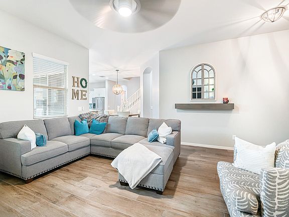 Discover the perfect blend of Gilbert living, convenience, and community in this stunning 4-bedroom, 3-bathroom single-family home nestled in the highly sought-after Cooley Station. Step inside to soaring 10 foot ceilings and elegant tile floors throughout the main living areas and bedrooms complemented by luxury vinyl plank on the second level. Custom-built additions include fresh built-ins that enhance both functionality and style, with a spacious master closet designed for impeccable organization. The beautifully landscaped side yard invites you to relax and entertain with manicured turf and a cozy firepit highlighting a comfortable lounge area. Cooley Station offers an unparalleled lifestyle, featuring two aquatic centers, serene walking trails, multiple parks, and courts for basketball and bocce ball. With year-round resident events and a prime location just minutes from ASU Polytechnic Campus, San Tan Mall, premier dining, and Phoenix/Mesa Gateway Airport, this property combines the best of home and community. Don't miss this rare opportunity and book your private tour today to experience the charm of this exceptional home in person. Buyers, inquire about receiving a lender credit of up to 1% applied at closing if you utilize the seller's preferred lender for financing to purchase this amazing home.