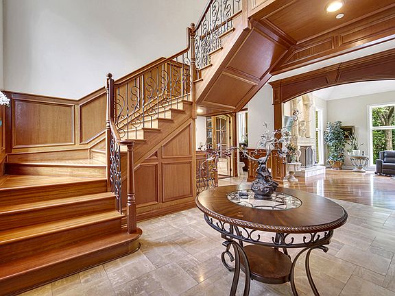 Tucked beyond a gated entry on nearly two acres of manicured grounds, this custom-built estate offers a rare blend of refined craftsmanship, modern luxury, and complete privacy, just minutes from charming historic downtown Long Grove and within the coveted Stevenson High School District. From the moment you enter the grand double-story foyer, every detail speaks of artistry and intention: Pella Signature windows framing serene views, intricate wainscoting, oversized 8-foot doors, and the shimmering glow of Strauss/Schoenbeck crystal chandeliers adorned with 24K gold-plated accents. Thoughtful built-ins, wrap-around buffet cabinetry, and tray ceilings add layers of distinction throughout. At the heart of the home, a chef's kitchen awaits, appointed with Israeli limestone floors, Viking appliances, dual sinks, a wine/beverage fridge, and an expansive island perfect for gatherings. The family room, crowned with a masonry gas/wood-burning fireplace and a soaring 2-story overlook, invites both grand entertaining and quiet moments by the fire. A Brazilian cherry wood-clad office/library offers an inspiring space to work or read. With 5 bedrooms and full baths on every level, the layout is as functional as it is beautiful. The first-floor en-suite is ideal for guests or multi-generational living. The primary suite is a sanctuary unto itself, with a spa-like bath featuring a jacuzzi tub, walk-in shower, and double vanity. Additional bedrooms boast generous closets, private or Jack & Jill baths, and tray ceilings for a custom touch. The finished walkout lower level (approx 3,000 sq ft) extends the living space with 10-foot ceilings, radiant heated floors, a masonry fireplace, bay window, full bath, laundry, and two additional bedrooms or flex rooms. Two huge bonus rooms are ready to be made into whatever your heart desires! Outdoors, a deck and walkout patio overlook lush landscaping and mature trees, creating a backdrop of natural beauty and seclusion. The heated, two-story 3-car garage offers exceptional utility, while recent updates-including a newer A/C and a 1-year-old boiler-ensure comfort for years to come. An estate of grace, privacy, and enduring quality-this Long Grove treasure is ready to welcome its next chapter.