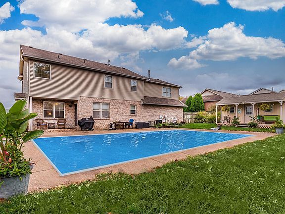 Spacious and Beautifully updated 2 story home with pristine in-ground salt water pool (20 x 40), perfect for outdoor living. Inside home you will find newer hardwood flooring in living and dining room, kitchen with granite counter tops, subway tile backsplash, hands-free sensor faucet, stainless appliances and spacious pantry. Living room features gas fireplace with custom blinds for windows on each side, new trim, freshly painted and semi open to kitchen. For those who like to cook you have an abundance of cabinet/closet space to store you tools. Back of home over looks the in-ground pool with pool/shed house built on site in 2017. Sellers installed new liner in 2022, updated motor and pump as well so it is energy efficient. Another perk of the outdoor area is the covered patio and lush landscaping surrounding entire home. Upper level of home features family room with attached office/bedroom that features walk-in closet. Half bath is located in family room area as well. There are 2 staircases to access the upper level and one is featured in garage, which is convent for moving furniture in and out. Laundry room and 3 additional spare bedrooms all with walk-in deep closets are located on upper level accessible to hall bath with updated fixates and double vanity . Primary suite is generous in size and primary bath has recently been renovated with tile shower, flooring. All linen closets are equipped with wooden shelving, plenty of storage in home, HVAC is zoned with 2 units that are serviced on a regular basis. 2 car garage with cable, work and etra storage cabinets included (workbench excluded). Looking for space to sprawl out, then this is a home you must see. Priced under appraised value. Carpets professionally cleaned recently, Immediate possession, POOL IS SCHEDULED TO BE OPEN APRIL 16TH BY FT KELLEY. Owners do have lake access to common lake on Brandywine Dr. Tax Exemptions will remain on property sellers have not transferred exemptions.