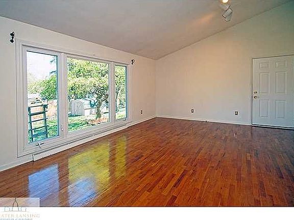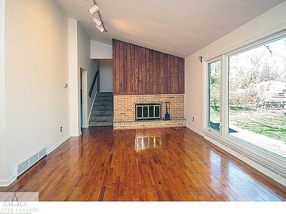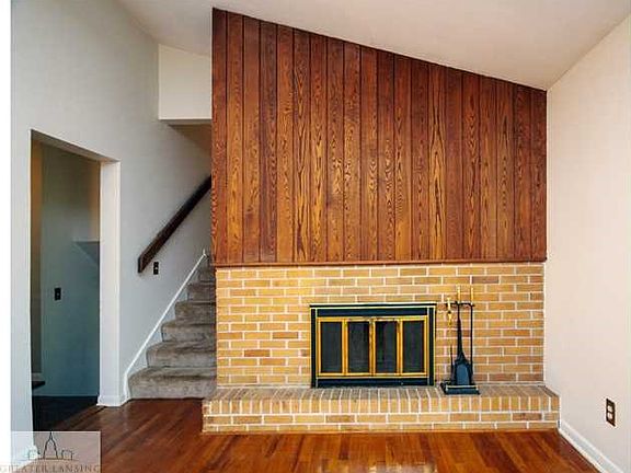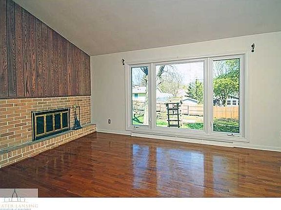 1st floor has large living & dining combo with vaulted ceilings and a wood burning fireplace. Downstairs is a second living space and full bath. Upstairs are three bedrooms with hardwood floors and a full bath.