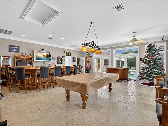 Spacious lakefront ranch home in a gated community with large, oversized rooms filled with abundant natural light The gourmet kitchen boasts granite counters and opens to a family room with a cozy fireplace. Conveniently located off the family room is a massive bonus/great room--perfect for entertaining. Enjoy serene water views, a sparkling pool, and a custom outdoor bar perfect for gatherings. Additional features include tons of large closets throughout and a circular driveway for added curb appeal. The ROOF was re-done in 2022 and the home is secure with impact windows and doors. This home has it all--comfort with space to live and entertain plus the low HOA dues make this home a rare find! CHECK OUT THE 3D WALK THRU.