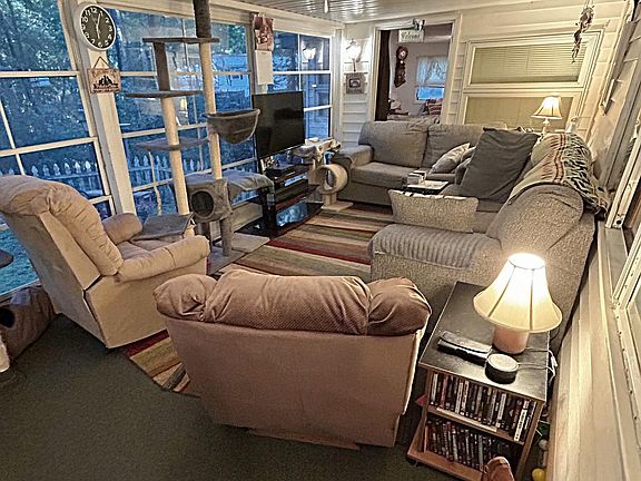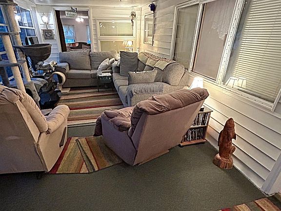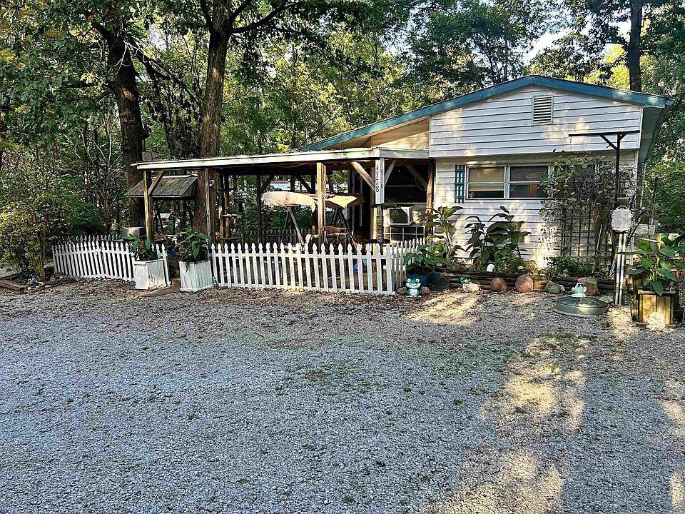 Enjoy this West Boggs Lake retreat! This mobile home includes living room, dining room, and kitchen with lots of cabinetry, counter space, breakfast bar, and all appliances included. Main bedroom features an impressive full wall built-in wardrobe, the full bath also has plenty of storage and a soaking tub with air jets, spare bedroom if needed, plus enjoy your morning coffee in the spacious 4-season sunroom. Spend your evenings on the porch, entertain around the firepit, or venture down the path to the lake. Dock and 2 covered boat slips included! Plus, a fenced yard area, a 2.5-car detached garage with lean-to, and 3-sided carport for all your water toys.