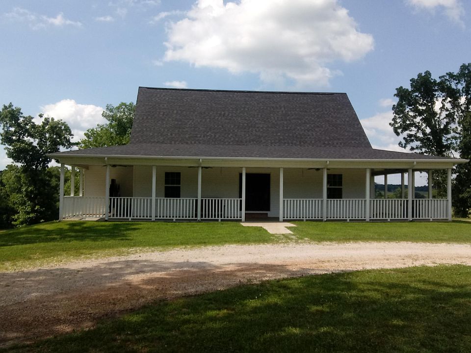 26.84 ACRES WITH A NEW 7 BEDROOM two story home w/full walkout basement. Covered front porch, beautiful entry, two bedrooms on main level, 5 bedrooms upstairs, all with large closets. Full unfinished walkout basement, great kitchen w/lots of cabinets and pantry. Formal dining room plus dinette and breakfast bar in kitchen. Approx. 20x20 covered deck looks out on the pasture and spring fed creek. 60x40 metal shop, 16x20 shed and 3 car carport completes the package. Located at the end of a road for privacy. Beautiful place, come take a look.