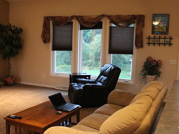 This one owner home is a must see for a growing family offering 4 bedrooms, on a hill top lot overlooking an apple orchard, on 2.86 beautiful acres yet still close to us 131. Private paved road with 10 total lots. 4 bedrooms 2 1/2 baths. 1,704 sq ft upstairs. 1,684 sq. ft. downstairs. 3,388 total. 2 bedrooms up. 2 down. 1 1/2 baths up. 1 full bathroom down. Open floor plan. Built in 2002. Leighton Twp. Wayland schools. Close to Caledonia. Well water. New Water heater (1 year old) New water softener. Furnace serviced regularly. Dual zone heat and air. New carpet upstairs. (2 years old) 21' by 12.5 ' deck on the back of the house. Great sunset views. 11' foot tall, 10' by 20' utility shed in the backyard. 2 stall garage with storage closet. Master bedroom connected to Master bath. Walk in closet in master bedroom. Jacuzzi/bath tub in master bath. Large kitchen/dinning area. Great for entertaining. Basement completely finished. Full kitchen down stairs. Bar/entertainment area downstairs. Recreation room downstairs. Large storage/mechanical room downstairs. Large front and backyards. Well maintained landscaping. Brick walkway through landscaping. In ground sprinkling. Wall vacuum system. Living room and bedroom ceiling fans. Entry area/foyer. Cathedral ceiling in living room. 9 foot ceilings upstairs and down. Apple trees on property. Paved driveway. A must see! Only 10 total lots on road. No renting and no land contract. And we do not need help selling this house. Thanks for looking!!!