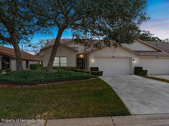 ACTIVE UNDER CONTRACT - ACCEPTING BACK UP OFFERS. WELLINGTON AT SEVEN HILLS...FORMER MODEL in 55+ Gated & Guarded Community! 2 Bedrooms + Den/Office/Bonus Room, 2 Baths, Screened Back Lanai, & 2-car Garage!! New Interior Paint. New Gas HVAC Heat Pump System 2018! The kitchen has Corian countertops with Bar & all White Cabinets. Dining Nook overlooks the scenic backyard. All new Porcelain Tile flooring was just installed in Kitchen & Laundry Room, Dining Area, Living Room, Formal Dining, & Den/Office/Bonus Room (Owner has built-in office/library furniture available at Buyer option!). High-Vaulted Ceilings in Living & Formal Dining. Electric/Smooth-Top/Self Clean Range (Gas hook-up available), Microwave with Fan, Refrigerator, & Dishwasher. Master bedroom with sizeable walk-in closet. Master Bath with double vanities & new faucets & Porcelain flooring. Guest Bath has Tub/Shower Combo, New faucets, & Porcelain flooring. Home is on TECO natural gas for Hot Water Heater & newer HVAC (2018). Laundry room with Laundry Sink, shelves, Washer, & Dryer. Roof (2015). Gutter & Downspouts. Professionally Landscaped. Sprinkler system. Master HOA fees includes Street Maintenance; Common Area Maintenance; Club House; Digital Cable, Internet, & Wi-Fi (Spectrum); Gated Security (Allied); & lots of Amenities Include: Pool/Spa, Club House, Bar & Grill (currently opened 6 days a week), Fitness Center, Computer Room, Billiard Room, Craft/Activities Room, Tennis Courts, Bocce Ball, & Horseshoes. Pride in Ownership! This is a 'Must See' home that is turn-key ready and available for immediate occupancy. Home is priced to sell.