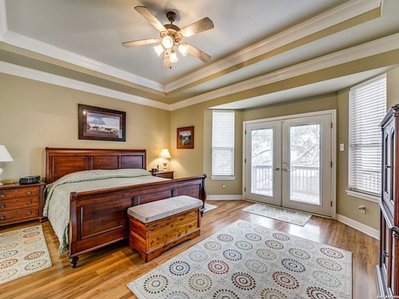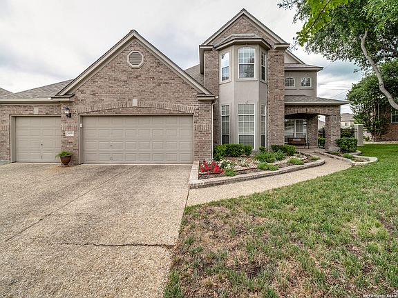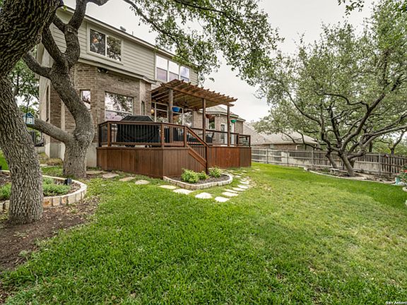 Welcome to 438 Chimney Tops - A spacious two-story home tucked into a quiet neighborhood in the desirable Stone Oak area of San Antonio. This 4-bedroom, 2.5-bath home offers a flexible layout with multiple living spaces and options for working from home. Step inside to a grand entryway that leads into a formal dining room and a light-filled family room. The open-concept kitchen features a gas stove, stainless steel appliances, and plenty of counter and cabinet space - ideal for both daily living and entertaining. The living area includes a cozy fireplace and flows seamlessly into the breakfast nook and kitchen. The primary suite is located on the main floor and offers peaceful views of the backyard. It includes a private en-suite bath with double vanities, a soaking tub, and a walk-in closet. Upstairs, you'll find a spacious game room along with an additional flex space perfect for a home office, playroom, or workout area. Enjoy outdoor living on the large back deck shaded by mature trees in the beautifully landscaped backyard perfect for relaxing or grilling. This home is zoned to top-rated NEISD schools and is minutes from The Village at Stone Oak, restaurants, parks, and major shopping destinations like La Cantera. With plenty of storage, thoughtful updates, and a warm, welcoming feel, 438 Chimney Tops is ready for its next chapter.