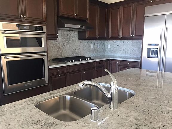 Welcome to the beautiful gated Laurel Pointe! This sought after community boasts walking trails, a private park and is in short walking distance to Vista Sports Park which offers football/soccer turf fields, baseball fields, playgrounds and shaded picnic areas. Guajome Lake is close as well! Sited on the neighborhood's highest cul-de-sac this 2016 built 4 bedroom 3.5 bath home catches coastal breezes plus enjoys far off mountain and sunset views. Downstairs: Popular plan with main bedroom suite at rear of house plus a separate office or living space off front entry hall. Inside laundry room. The living room opens to a chef's kitchen featuring a large island with seating, granite counters, stainless steel appliances, a walk-in pantry and plenty of storage! Both dining and living rooms open out to the covered patio for entertaining. Take in the sunsets while cooking out around the built-in BBQ and bar! Upstairs includes a large game/ family room with wet bar and balcony, 3 additional bedrooms plus a large west facing balcony at rear of house. Central vacuum system. EV outlet in extra large garage, soft water system, On Solar. Pets OK! Option to keep some furnishings, shelving and outdoor patio set through tenancy.