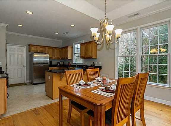 Five bedroom & five full bath light filled transitional home. Hardwoods in spacious living & dining rooms. Kitchen features tile floor, granite counters, maple cabinets & stainless appliances. Huge master suite with sitting room and luxurious bath. Huge family/home theater room downstairs with wet bar or kitchenette. Double decks overlook wooded back. Laundry upstairs and down. New roof as of 8/20/20. Walk or bike to UNC and downtown!