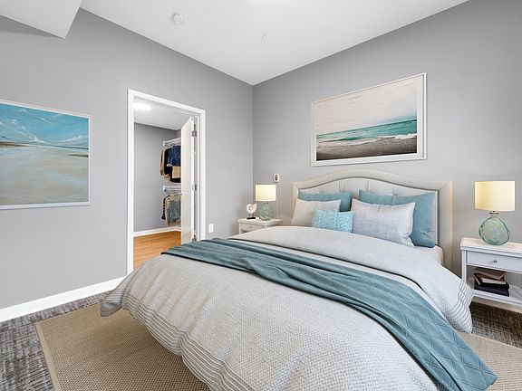 Your full-sized refrigerator, stove, microwave, garbage disposal, and dishwasher make cooking and clean-up a breeze. The quartz countertops, soft-close cabinetry, and stainless-steel appliances bring modern luxury to your fingertips. The open-concept kitchen/living space gives flexibility to your living space. Your large walk-in closet has shelving and space for hanging clothes, with the in-home washer-dryer combination machine right inside your closet allows you to do your laundry with the convenience of just pressing the button. The bathroom boasts zero-threshold showers, grab bars, and pull cords. The building's intercom-controlled access allows your family and friends to visit with ease. Communal balconies offer comfortable communal seating and a great view of downtown.