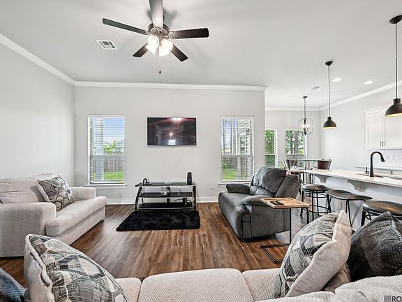 Beautifully maintained and built in 2023, this 4 bedroom, 2 bath home in the heart of Slidell offers comfort, style, and space. Step into an open floor plan with abundant natural light, a spacious living room, formal dining area, and a cozy breakfast nook just off the kitchen. The kitchen features white cabinets, quartz countertops, a white subway tile backsplash, stainless steel appliances, an island with barstools, and modern fixtures throughout. The primary suite impresses with a tray ceiling, ensuite bathroom with dual vanities, a 12x24 ceramic tile shower with frameless glass door, and a large walk in closet with built in shelving. Three additional well sized bedrooms offer versatility and feature modern ceiling fans. Outside, enjoy the extended covered patio, fully fenced large yard with mature trees, and simple, low maintenance landscaping. Additional highlights include a 2-car garage, long driveway, fantastic curb appeal and in Flood Zone C. A must see home that combines function, beauty, and convenience! Schedule your private showing today!