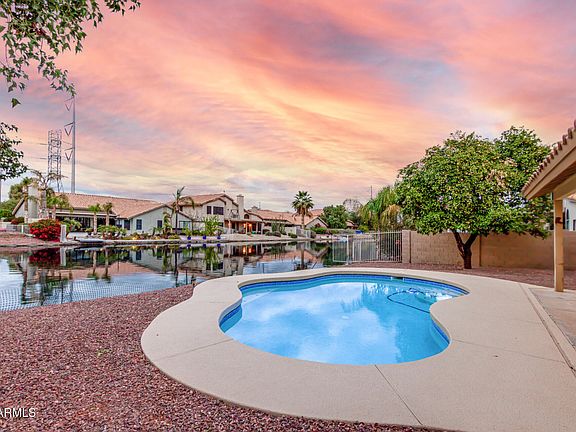 Remodeled waterfront home on dead-end street in Stonebridge Lakes. Home features dual pane windows, ceramic plank tile, vaulted ceilings, upgraded lighting, four & six panel doors, brushed-nickel fixtures, & refinished fireplace. The kitchen includes new cabinets with soft-close drawers, quartz counters, center island, stainless steel appliances, and sink. Main suite includes huge walk-in closet, double sinks, walk-in, glass enclosed, porcelain shower, stand-alone tub, new, & high-profile private toilet. Hall bathroom includes quartz countertops, porcelain tub surround & new, high-profile toilet. 3-car garage w coated floor & storage cabinets. Covered patio & pool with re-coated cool deck. Fantastic Gilbert location close to canal paths, Freestone park, restaurants, shopping and much more.