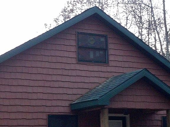 Small cabin on 7.78 wooded acres of property. 1 bedroom with finished loft area, living room with cathedral ceiling open kitchen area, laundry room, custom bathroom w custom tiled shower custom glass sliding door. Living room and kitchen Hickory hardwood flooring. All knotting pine walls/ ceiling TG. Unfinished basement. Full back deck 16x36 covered deck on first floor. Basement has outside concrete patio 16x30