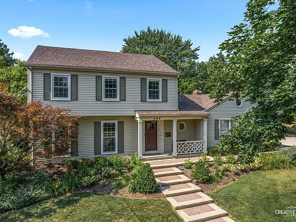 Welcome to 438 Hill Avenue, located in the heart of Glen Ellyn. This in-town charmer is situated just steps to school, town, train, restaurants, library, Prairie Path and Main Street Rec Center. Remodeled in 2022, the home features 3 bedrooms and 2.5 baths with finished basement. The open concept living room, kitchen and dining space features custom Greek Shake millwork cabinetry and floating shelves, Calacatta Laza quartz countertops, ceramic backsplash, GE Monogram refrigerator, range, hood, microwave and beverage fridge, Bosch dishwasher, Kohler farmhouse apron sink, bay window banquette with storage, built-in desk with custom millwork and wall sconce lighting, fireplace and white oak engineered flooring. The flowing floorpan also includes adjacent family room with scenic views of the fenced yard, mudroom/laundry room combo and attached two car garage. The second floor boasts generous sized bedrooms including a primary ensuite with custom shaker style double vanity, Kohler undercount sinks, Misterio quartz countertop, herringbone subway shower tile and accent wall, Delta brass bathroom fixtures and basketweave floor tile. Two additional bedrooms are light and bright with a shared hall bath. The finished lower level includes a large finished rec room with wood panel accent wall, custom built-in cabinets and plenty of storage space. Additional updates include front yard landscaping and paver walkway, high efficiency water heater, Trane Accuclean electronic hepa filtration system, April Aire bypass humidifier, new garage door with wi-fi and integrated camera, and upgraded 200-amp electric panel. Roof new in 2018 and driveway in 2019. Whether entertaining a group, or enjoying day to day family time, this home offers comfortable, updated living in a location that allows you to take advantage of all that the village has to offer. Simply move in and enjoy this wonderful home!