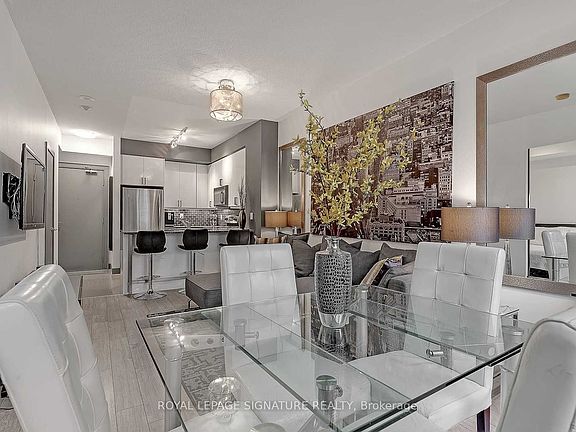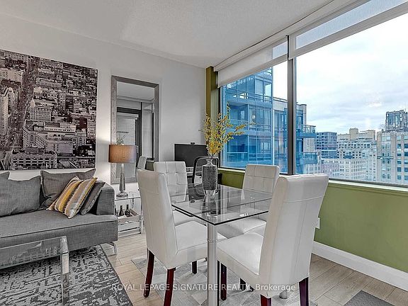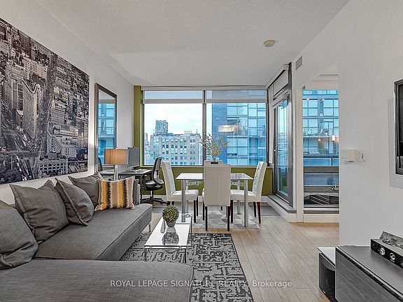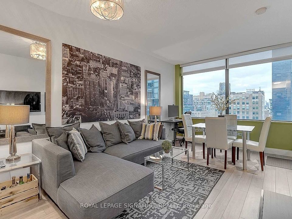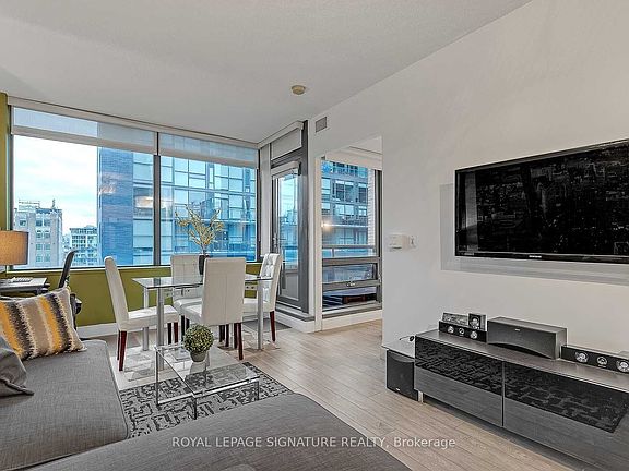 The Luxurious Hudson In Prime King West. Fully Furnished 1 Bedroom with 1 underground parking spot included. **All inclusive of utilities except Internet**. 9' Ceiling height. Newer Wood Floors. Renovated Full-sized kitchen with tons of countertop space & breakfast bar. The Club Hudson Amenities Include: Well-equipped Gym, Dining Room & Lounge, Billiards, Home Theatre Room, Landscaped Terrace with 2 BBQs, 24hr Concierge, Free Visitor Parking. Just step outside & enjoy everything you need that downtown has to offer with shops, restaurants, cafes, nightlife, grocery, bank, LCBO, parks, sporting venues, TIFF Lightbox, and much more!