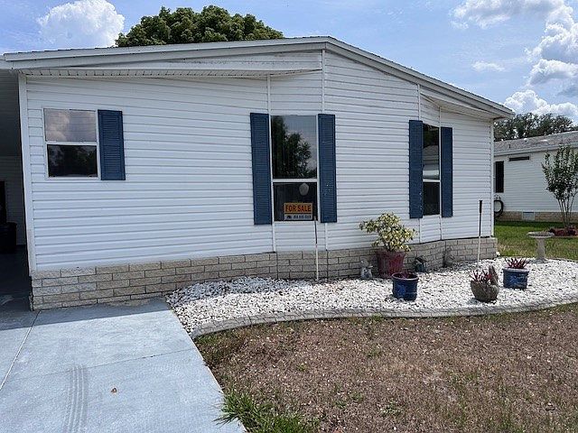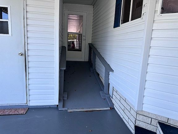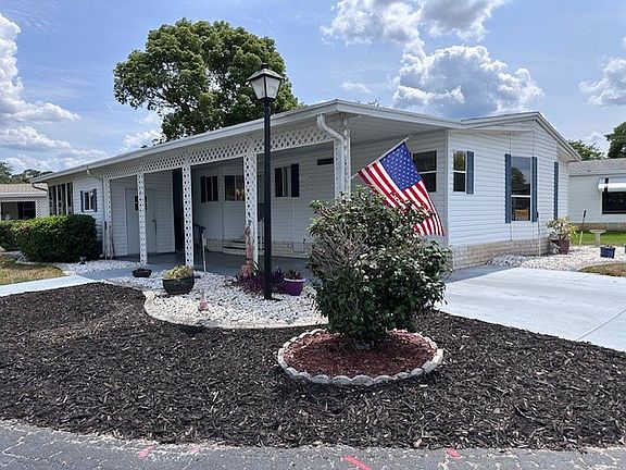 This spacious 2/2 has a large kitchen with an abundance of cabinet space, and a farm sink. Glass cooktop in the island and a newer wall oven. Ceramic title porch, kitchen hallway foyer, and guest bath. The rest of the home has laminate flooring. AC replaced 12/2021 and washer 2025. Has a handicap ramp off the Florida room. Nice open floor plan. Separate laundry room off hallway. Great foyer with built in cabinet. French doors into master suite with double vanity sinks and also French doors going into master suite. Rounded steps into the home makes this corner lot so charming. This home won't last long! Call today or just stop by for your private tour