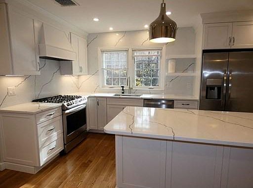 Beautifully updated top floor, 3-4 bedroom unit - near the many wonderful things that Newton has to offer. Less than a mile from schools, walk/jog trails, marathon course, and Newtonville shops & commuter rail. Quietly set back, yet only minutes from all major routes. Unit has been tastefully renovated with all of the modern amenities of today's world. Kitchen is equipped with all stainless steel appliances, and center island; quartz countertops and backsplash throughout. Bright living room/dining room condo features gleaming hardwood flooring and gas fireplace lined with quartz. Unit can be used as a spacious 4-bedroom, or a 3-bedroom with an oversized fireplaced family room, complete with a modestly sized office. Front bedroom offers the possibility as an entryway to an additional 1000+ square feet of space in attic. Hardwood flooring and Wainscoting throughout. Separate laundry room in basement and 4 deeded parking spaces complete this lovely condo.