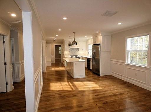 - Kit Dscrp: Flooring - Hardwood, Countertops - Stone/Granite/Solid, Dining Area, Stainless Steel Appliances, Kitchen Island, Open Floor Plan