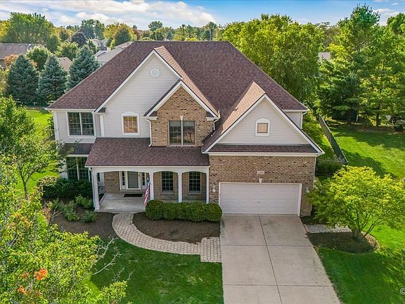 Welcome to this stunning home in Moose Lake Estates! Situated on one of the best lots (.4 acres) in the area it offers complete privacy and easy access to everything! Beautifully maintained, the home features brand new carpet throughout, newer paint (2021). Step into the 2-story entry with gorgeous windows and solid hardwood floors. There is a formal dining room and formal living room, perfect rooms for entertaining! There is a 1st floor office with glass french doors that can be closed for privacy or open to the light and bright kitchen. This gorgeous kitchen features the most beautiful butlers pantry with glass front cabinets, granite throughout the kitchen, SS appliances (dishwasher new in 2020) which are all included. There is a 1st floor laundry room, very conveniently located off of the 3-car garage. The back family room has custom windows, accent lighting and a fantastic masonry brick fireplace with gas start. Upstairs you will find 4 generous bedrooms plus a large loft. The master suite is oversized and has a large bathroom with 2 separate vanities, a Jacuzzi tub and a separate shower. Also, a generous walk-in closet with organizers. But wait until you step out onto the brick paver patio into this incredible yard with a fabulous in-ground saltwater pool (18x38) with a heater and an automatic retractable cover for safety and peace of mind. This pool is incredibly easy to maintain! There is a pergola with a built-in bar area, plenty of patio space for multiple entertaining areas or quiet spots, and a built-in fire pit on the patio. The yard is .4 acres and fully fenced-in; it has a sprinkler system and offers abundant perennials and mature trees. The home also features newer central air (2022), roof, gutters and downspouts. (2018). A full basement completes the picture, and is waiting for you to bring your ideas for finishing. 5 minutes to I-88, great shops and excellent restaurants. Overall, it's a 10!