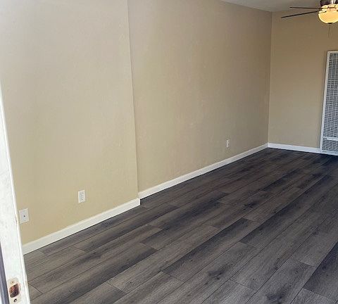Second floor apartment with newer flooring installed. The 4 unit apartment building includes covered parking, laundry room, and common grass area for tenants to enjoy. Located one block north of downtown. Parking for 2 cars in tandem. One year lease. Owner pays for water and trash. Renter pays for electricity, gas, and any internet access. Security deposit due upon signing and first and last months rent due upon move in. No smoking and no pets.