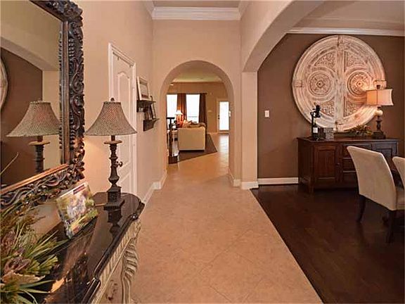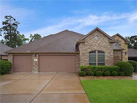 Absolutely stunning 1 1/2 story with brick and stone exterior. Beautiful finishes such as hardwood and tile floors, granite countertops. You will love the large upstairs game room and its adjacent media room complete with silver screen and Sony Pearl projector. The true 3 car garage has one bay extended to accommodate extended cab vehicle! The study has a closet and could be a 4th bedroom. Covered patio and quiet location backing to greenbelt. Zoned AC, fireplace, sprinklers! MUST SEE!