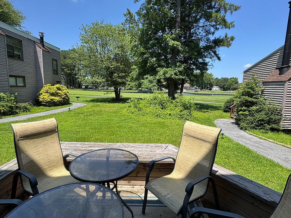 Ready for Immediate occupancy. Enjoy golf course and water views from this spacious 3-bedroom, end-unit townhome. Sit and relax on the large deck or second floor balcony. Inside the living room boasts 11ft wood beam ceilings and wood fireplace. The open kitchen/dining room features granite counter tops and upgraded cabinets. Additional sitting room on the first floor with wet bar great for entertaining. Both full bathrooms recently remodeled. All windows and sliders replaced in 2017. This beach home is being rented furnished. Take advantage of all the Ocean Pines amenities and close proximity to the marina and yacht club.