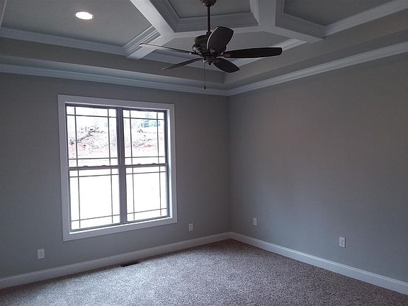 Come take a look at this new European style with low maintenance exterior of stone and vinyl with sodded yard. interior is designed with beautiful light gray walls, white trim and gray cabinets and doors. bathrooms and laundry have ceramic tile floors and master shower is ceramic tile as well. Bamboo floors are in the great room, kitchen, dining room, foyer and hallways. there are 9' ceiling throughout with tray ceilings in master bedroom and dining room and 14' ceilings in the great room and foyer. There are granite countertops in kitchen, baths, and laundry. Stainless steel appliances are featured in the kitchen.