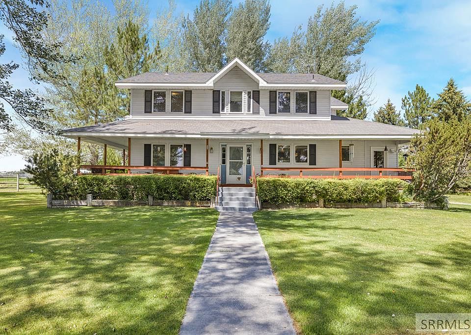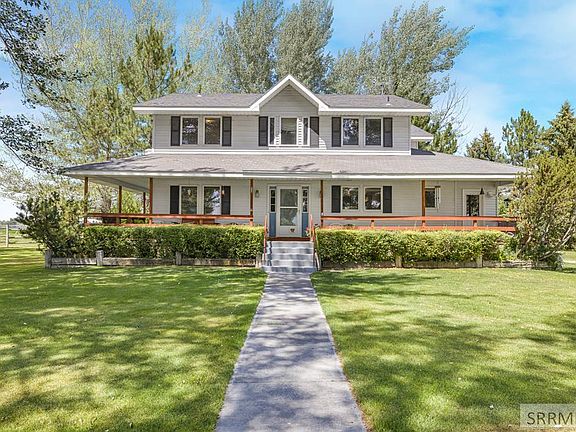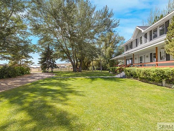 This is a wonderful home nestled between gorgeous shade and fruit trees with plenty of acreage in the highly desirable Riverton area. With 5 bedrooms and 2.5 baths, there is plenty of growing room. Winters are cozy with both a wood- burning stove and a gas fireplace. Enjoy stunning Snake River sunsets by the backyard firepit or in the hot tub, or a sunrise on the front porch, which wraps around more than half of the home. This quaint property overlooks beautifully manicured yards, has a separate corral complete with chicken coup, space for gardening and a covered patio ideal for kennels or equipment storage. The basement is for storage only, perfect for farm living. Livestock will have ample space and comfort with a loafing shed and irrigated pastures conveniently fenced for staggered grazing. This gem has the acreage to begin your working ranch with unprecedented non-metered water rights for 5 acres, a tack room, 4 horse-saddle stall, shop, RV/trailer parking and an insulated loft. The K-Line irrigation system will stay with the homestead. Seller is offering a $1,500 allowance to replace the formica. Great property if you have or want to have horses! Also a 30'x40' shop with a 22'x9'4" insulated loft and an additional tack room and 4-horse 16'x19' saddle barn