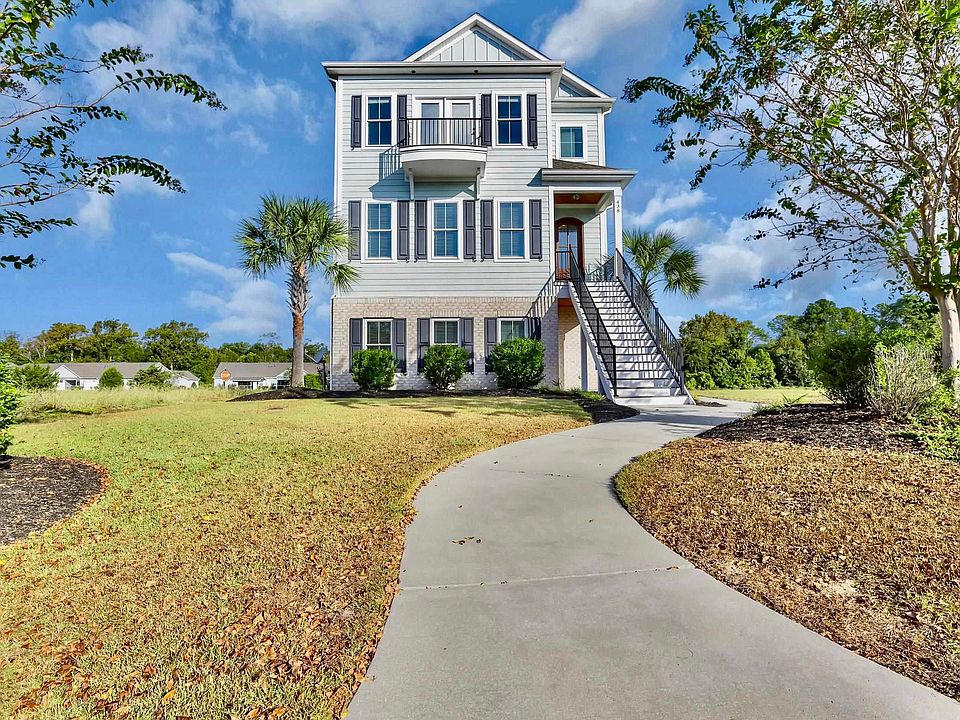 Welcome to 438 Saint Julian Ln., a stunning three-story home located in the highly sought-after gated community of The Battery on the Waterway in Carolina Forest. Perfectly positioned on the second row from the Intracoastal Waterway, this elegant property offers a lifestyle of comfort, space, and scenic beauty. This spacious residence features 4 bedrooms, 3 full bathrooms, 1 half bath, and a large bonus room—ideal for a home office, media room, or playroom. The home is also pre-wired and ready for elevator installation, offering future convenience and accessibility across all three levels. Stepping into the recently repainted interior, you’ll find quality finishes and thoughtful details throughout. The luxurious master suite includes tray ceilings, a spa-like en-suite bath with a soaking tub and walk-in tiled shower, and a private Romeo and Juliet balcony—perfect for enjoying tranquil views of the nearby waterway. The home features a surround sound system throughout.. The heart of the home is the chef’s kitchen, equipped for serious cooking and entertaining. It opens up to a rear porch that overlooks a serene lake, providing an ideal setting for morning coffee or evening relaxation, and cooking out on your new grill. This custom home also features a Back-load garage for enhanced curb appeal, Rear-facing porch with peaceful lake views, elegant curb appeal with coastal charm, Gated community with privacy and access to the waterway and walking trails. Don’t miss this opportunity to own a piece of coastal luxury in one of Myrtle Beach’s most prestigious communities. Whether you’re looking for a primary residence or a second home close to the water, 438 Saint Julian Ln. offers it all.