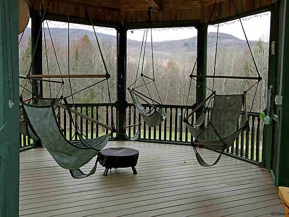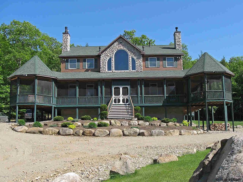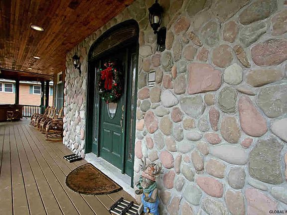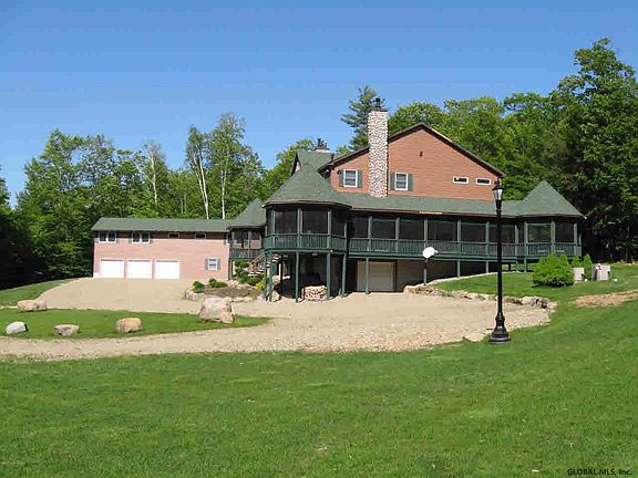 Absolutely stunning secluded estate, double living room, 1 with a wood stove, 1 with a propane fireplace. Dining area w/FP. Each of the 5 bedrooms has it's own bath and propane fireplace. Large detached heated garage housing a workshop with storage above as well as the automatic diesel generator that will power the entire property in case of a power outage for approximately 30 days. Solar panels which feed back to the grid keep electric bills low (panels are owned) Trails on the property for exploring by foot, snowmobile or ATV. Wrap around screened porch with hot tub and several seating areas. Could easily be a B&B. Make sure you go to the photos and click on the virtual tour !