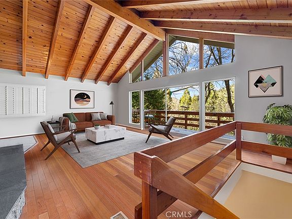 Nestled in the serene mountains of Crestline, this charming 3-bed, 2-bath home offers a spacious floor plan with soaring beamed ceilings, a stunning stone fireplace, and large windows that showcase breathtaking views. The main floor features an upgraded kitchen and three generously sized bedrooms and luxurious bath, while the lower level includes a cozy family room with a balcony, another full bath, a versatile bonus room, ample storage, and a dedicated laundry room. Enjoy seamless indoor-outdoor living with two expansive decks, perfect for taking in the peaceful treetop scenery. Additional highlights include a private driveway, a two-car garage, and a prime location just a short drive from Lake Greggory and shopping centers. Some furnishings are included, making this mountain retreat even more inviting!