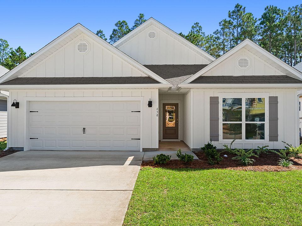 Welcome to 438 Wolcott Way, a new home at Bayside at Ward Creek in Panama City Beach Florida. This home is under construction. As you enter this home, you will find two bedrooms off the entry hall with a full bath in between. The laundry room located across the hall is spacious and offers space for storage if needed. There is a fourth bedroom that could serve as an office space/ flex room/ bedroom next to the laundry room. The heart of this home is the spacious living area that is open to the kitchen.
