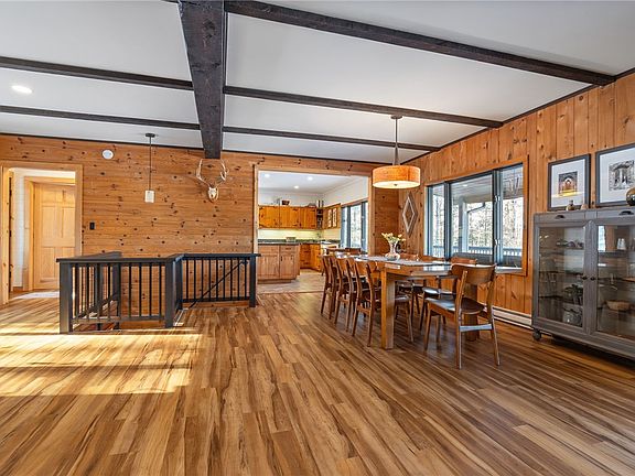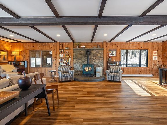Nestled on 90+ acres with a gorgeous stocked pond is this country retreat! The beautifully preserved 4-bedroom, 2-bathroom log home offers privacy and space, making it ideal as a full-time residence, luxury rental, hunter’s paradise, or private getaway! The main floor features an open concept with large windows for natural light. The gourmet kitchen has custom wood cabinetry, granite countertops, stainless steel appliances, double oven, subzero refrigerator, a spacious island, and a breakfast nook. The great room has a dining area, living room with gas stove, access to the back deck overlooking the woods along with access to the large front deck overlooking the pond. The sliding doors from the living room lead to a spa-like setting with heated indoor saltwater pool, Zen indoor garden, vaulted ceilings, large windows overlooking the back and side yards, and plenty of seating. There are 2 bedrooms with closets and a full bathroom with a walk-in shower completing the first floor. The lower level is almost an identical layout with the open concept including a family room with wood fireplace, dining area, and a second full bathroom with a walk-in shower. A NEW home office with built in cabinetry and a barn door also containing a laundry closet. 2 additional bedrooms providing private accommodations complete this level. Outdoor features include three large decks, a backyard rock garden with a fire pit, and a 12-15' deep stocked pond. Apple trees, blueberry bushes, and raspberry patches offer homesteading potential, while maintained walking paths and ATV trails extend through the wooded acreage. Additional structures include 2 large outbuildings 1 with electric and a detached 2-car garage. Upgrades include: New interior and exterior doors throughout, new ceilings, mostly new flooring, new baseboard high efficiency heaters, new pool heater, liner and windows, renovated stairs to lower level, new spiral staircase linking outside decks, updated electric, Trex decking on both decks, updated outbuildings, new roofs and all buildings stained 2024. This property offers a private and spacious country setting with modern amenities ~ a must see!