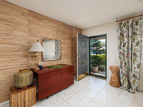Step into this charming block construction 3-bedroom, 2-bath home where comfort meets character. Set on a beautifully landscaped lot, the property welcomes you with mature, exotic foliage—including a stunning tri-colored eucalyptus, low-maintenance ivy accents, stately staghorn ferns, and a wonderfully shaded front yard. The private backyard feels like a hidden garden, framed by roses, sculpted hedges, and thoughtfully curated plantings. The neighborhood feels like a private enclave with no through traffic and lots of other beautiful homes. Inside, the home lives light, bright, and surprisingly spacious, thanks to an open floor plan that plays much larger than its footprint. Fresh interior and exterior paint, new carpet, a 2023 water heater, and a brand-new roof offer peace of mind and move-in ease. The oversized primary bedroom features plantation shutters, an en suite bath, and sliding doors that open directly onto the screened porch—your perfect morning coffee spot. The second bedroom is also generously sized, and all three bedrooms offer excellent closet storage. A 1-car garage with a 2-car driveway completes this inviting home, blending practicality with charm. Light-filled, lovingly maintained, and wrapped in lush greenery—this is the kind of property that simply feels good to come home to. NO FLOOD or EVACUATION. Easy to Show!