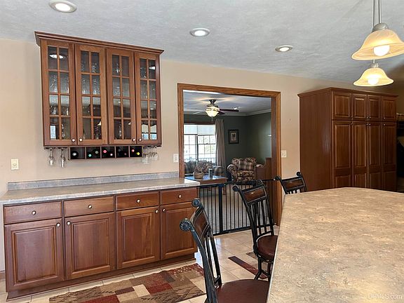 Township taxes and close to town, home is situated on 17.84 acres with most of it wooded. This spacious home with plenty of room for a big family and entertaining. The main floor features a large kitchen & dining area that includes a patio door to the deck. The kitchen has a large center island, a bank of pantry cabinets, plus wine & glass storage too. The main bedroom has a large walk-in closet, with it's own bath. The other two bedrooms also have walk-in closets. The guest bath is large with plenty of storage and step in tub/shower. The living room has a gas fireplace with a beautiful mantel to be enjoyed all winter long. The main floor also has a den/office plus the utility room with cabinets. The finished attached garage measures 30x40, plenty of room for toys and 2 vehicles. Need more garage space, there is an unattached garage too! The basement is the secondary living space, a large family room, kitchenette, full bath, and an additional finished room. This could be a great space for a mother in law, adult kids or movie night with the family The basement also has a walk-out door that leads to the fenced in backyard. The backyard is fenced with vinyl fence that has 4 gates and the deck made with Trex decking. Upper patio, steps, and lower patio, are made of stamped concrete. Yard area includes fire pit, wooden swing set, garden, berry patch, and apple orchard. Landscaping includes several perennial gardens This is a must see home. There will be an Open House on March 11th from 11am to 1:30pm.