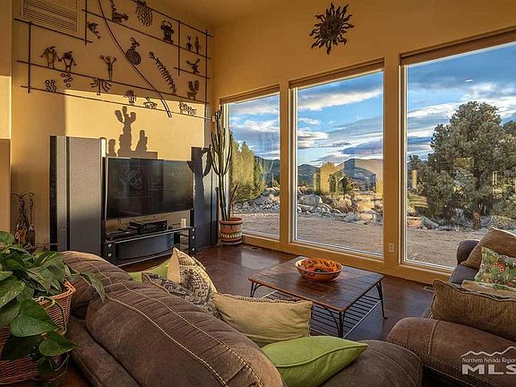 STUNNING HIGH DESERT JEWEL! Rare offering on this custom ICF home featuring a fabulous open floor plan with room for everyone. Chef's kitchen, huge pantry, extensive master suite with massive walk-in closet, adjacent patio and views to die for. Separate office (not included in bedroom count) AND large game/theater room. Panoramic views from nearly everywhere on the property and privacy galore! Terrific access and less than 20 min to 395/580.
