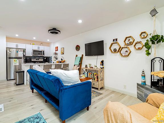 Completely updated Point Loma townhouse is situated in an ideal location; only 5 minutes from Ocean Beach and everything else San Diego has to offer. This two-story townhome offers an amazing layout for entertaining with a living room and kitchen upstairs, and with bedroom downstairs. Recent upgrades include new luxury vinyl flooring, paint, and appliances. Mere minutes from all beaches, with 5 minutes by car gives you access to the 5 & 8 freeways. Entering the home, you will be met with a dedicated laundry room, hallway linen closet, primary bedroom, and completely updated bathroom. Back upstairs, open concept living and dining room with a balcony that allows slight views of Seaworld and fireworks. This unit also comes with TWO tandem parking spaces, central heating, and air. Amazing opportunity for a first time buyer, investor or someone looking to downsize.