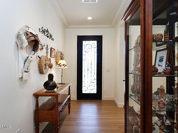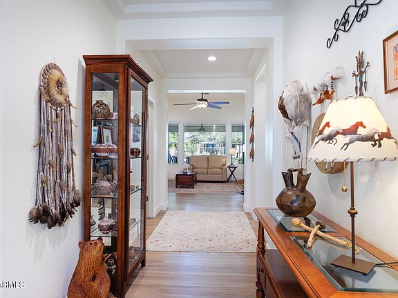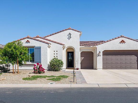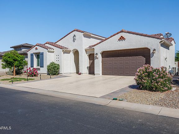 Beautifully appointed 2 bedroom, 2.5 bathroom home with a den in the desirable Robson Ranch community! From the moment you step through the custom Arizona Iron Door, you'll notice the thoughtful upgrades throughout. As soon as you walk into the spacious living room you will feel right at home with soaring 11' ceilings! The kitchen features upgraded cabinetry, a custom backsplash, high-end appliances including an induction cooktop, and a spacious walk-in pantry and even a Butler's Pantry! Luxury vinyl plank flooring runs throughout the open floor plan, complemented by a versatile den and an additional walk-in storage closet. The primary suite offers a spa-like retreat with a custom shower. Outdoors, enjoy low-maintenance landscaping and an extended covered patio perfect for relaxing or entertaining! This spacious yard has also been fully fenced making it a lovely desert oasis! Come and see this highly upgraded, luxury home today!