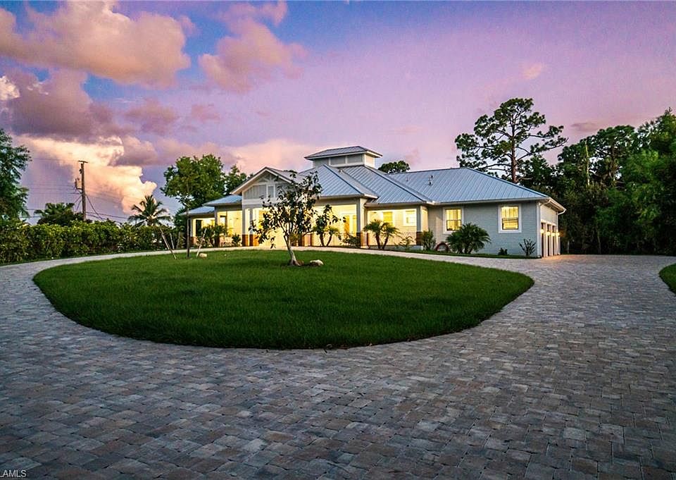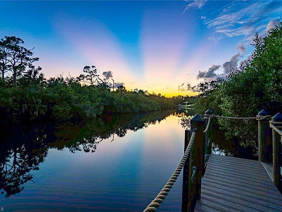 2024-BUILT ESTATE SET ON A PRIVATE 4-ACRE LOT with 200 feet of river frontage, along the Estero River, with direct Gulf-access! This custom residence offers a rare opportunity to enjoy both privacy and waterfront living. Two private docks (one with a 10,000-lb covered stainless steel lift) provide effortless water access and beautiful views across to Koreshan State Park. Designed by renowned architect Dan Sater, this property combines timeless craftsmanship with thoughtful modern upgrades, creating the ideal family compound or sanctuary for those who value space, security, and nature. Spanning over 3,000 sq ft under air, this home features 4 bedrooms, 3.5 bathrooms, with soaring ceilings ranging from 11 to 16 feet. Offers wood-beamed living spaces, hardwood flooring throughout, hurricane-impact windows and doors, and energy-efficient solar panels. The gourmet kitchen showcases Café GE appliance package with three ovens, while the outdoor kitchen with built-in gas grill invites year-round entertaining. Step outside to more than 1,600 sq ft of porch and patio space, plenty of room to add a pool, a 950-sq-ft 3-car garage with soaring 30-foot ceilings, a gated entry, and a 200-foot private paver driveway. Conveniently located near Coconut Point, Publix, Waterside Shops, 5th Avenue, and RSW International Airport.