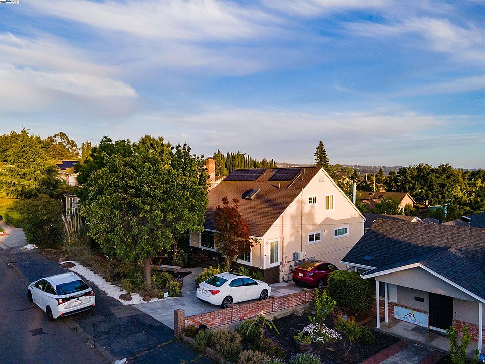 Charming English-style cottage with a detached ADU in the heart of Castro Valley! This beautifully updated home blends timeless character with modern upgrades and room to grow. Enjoy valley views from the expansive deck, complete with a cozy fire pit and decorative maple tree—perfect for relaxing or entertaining. Inside, you'll find three inviting fireplaces, skylights, and carpeting throughout. The detached ADU (approx. 700 sq ft, in addition to 1,787 sq ft main home) includes a full kitchen, bathroom, HVAC, and private deck—ideal for guests, home office, or rental income. Additional highlights include:Paid off Solar,New Roof , professionally engineered seismic retrofit, Jacuzzi tub, limestone tile, walk-in closets, and a 100-foot driveway with room for RV/boat parking. Located near top-rated schools and downtown Castro Valley dining. Roof is fairly new and Solar is fully paid off