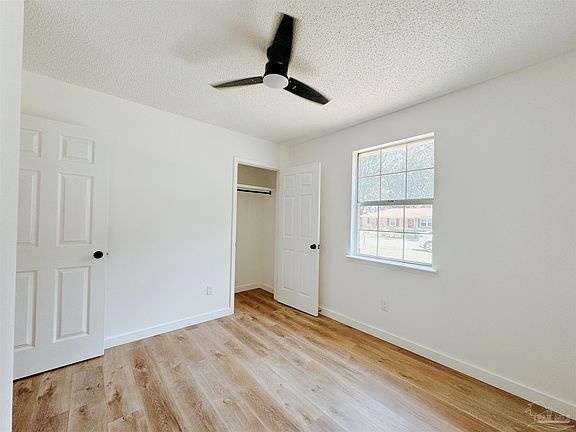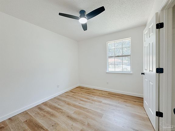 Welcome to 4381 Santa Villa Drive - a beautifully remodeled 3-bedroom, 2- full bath home in the heart of Pace. This move-in ready home combines modern updates with functionality, comfort, and style. New luxury vinyl flooring and modern black light fixtures throughout the home. The kitchen is updated with new cabinets, butcher-block countertops, and new stainless steel appliances. The bathrooms have new vanities with marble countertops, a new bathtub in the guest and a tiled shower in the main en suite bathroom. All bedrooms come with new remote controlled ceiling fan/light. The spacious backyard is surrounded by a 6ft privacy fence. A huge shed in the backyard offers endless possibilities for hobbies, storage, or home business. The one car garage is perfect for added connivence and storage. Located just minutes from Hwy 90 shopping, dining, and schools, this home is the perfect blend of modern updates and in a prime Pace location! Don't miss your chance to own this adorable home, schedule your showing today!