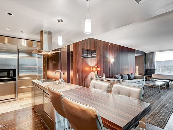 Lowest priced one-bedroom suite with North Strip and Mountain Views. This unit features two balconies, one can be accessed from the living room and one can be accessed from the bedroom. This floor plan has a powder bathroom in addition to the main bathroom and stacked washer and dryer. Fully furnished w king bed, sleeper sofa, 2 TV's, fireplace, & stainless appliances. Located in Palms Place Resort & Spa, just 1.2 miles from the strip, centrally located, easy access to dining, shopping & entertainment. World class amenities include resort spa, fitness center, & dining.