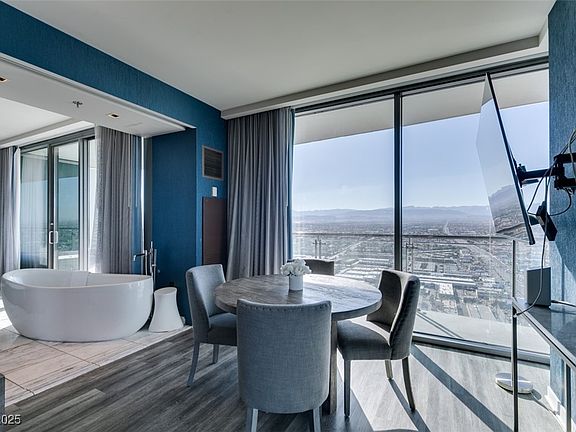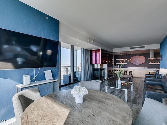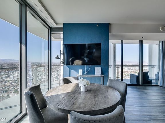 This spectacular one-of-a-kind luxury 50th-floor condo boasts a huge wrap around balcony. Enjoy gorgeous views of the Las Vegas Strip, City, and Mountains! Lots of luxurious amenities... pool, spa, fitness center, valet, concierge, dining, shopping, room service, & entertainment options. Fully furnished, custom countertop with copper accents, stainless steel appliances, & a beautifully finished fireplace. Enjoy an unobstructed view of breathtaking sunsets from your bedroom, which features floor-to-ceiling windows, anoversized balcony, a king-size bed, and a luxurious soaker bathtub. Washer and dryer in the unit are included, plus the property offers fluff and fold and dry cleaning options. The Palms Place condos can be used for short term rentals (such as AirB&B or VRBO Rental Programs), long-term rentals, or for private use. Conveniently located near the Las Vegas Strip, fwy, airport, and lots of shipping & dining.