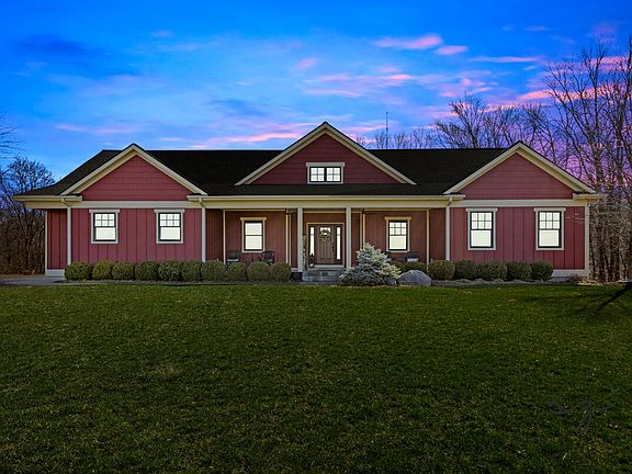 Looking for your dream home without the time, hassle or expense associated with building? THIS IS IT! Constructed in 2015 with no expense spared. This 3,500 sq ft. modern farmhouse-style single story home sits on 5.52 acres of rolling and wooded land, yet conveniently located 20 minutes from GR, 10 minutes from Caledonia & 40 minutes from Kalamazoo. The open and inviting floor plan makes this home perfect for entertaining. Vaulted ceiling with stunning wood beam detail, real hardwood floors & stone gas-log fireplace invites you in and begs you to stay. Stunning gourmet kitchen features top-of-the-line 48'' Sub Zero refrigerator, 48'' Wolf range & dual Bosch dishwashers. Sprawling main floor primary suite with luxurious en suite bathroom, custom designed walk-in closet, office area and adjoining 4 season sun room. Spacious and extremely useful mud & laundry room connects the garage to the rest of the main floor. Above the garage you'll find an unfinished bonus space that is already plumbed and prepped for electrical to accommodate a full bath and kitchenette/wet bar. Downstairs you'll find a cozy family room with built-in wet bar (including an ice maker & beverage fridge) that walks out to the patio. Two beautiful bedrooms with walk-in closets (one bedroom even boasts a Pinterest-worthy built in double bunk bed) & 2 thoughtfully designed full bathrooms including tile, granite & in-floor heat. Finished flex room is currently being used as an additional office area and is plumbed for additional laundry hook-up as well. The workout room is the perfect spot for that gym equipment, but could easily be converted to a 4th bedroom if desired. Storage space galore!! No expense spared outside as well... LP SmartSide siding, Pella windows, Azek composite deck, underground irrigation, brand-new & HUGE paver patio with concrete base, gas outdoor fire pit, basketball/pickle ball court with 400 amp electrical service... and the list goes on!