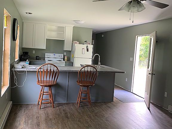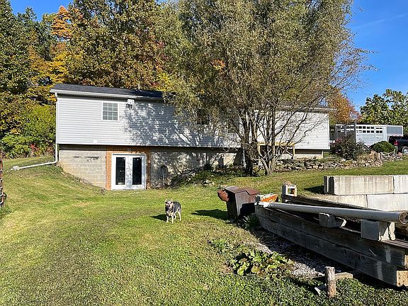 New metal roof & stainless steel insulated chimney fall 2015. House can be heated by woodstove. 5x7 mudroom addition, 24x40 two car garage/pole building; 10x12 red chicken house; 16x48 greenhouse. 1 wall air conditioner, 11x12 horse barn, apple cherry, peach trees, raspberries, asparagus, English walnut trees, produce stand by road. Koi pond, brick patio, replacement windows.