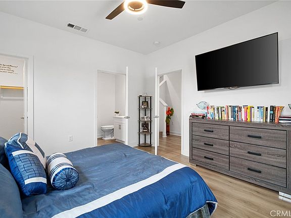 Welcome to this inviting Tri-level end unit property! With nearly 1,700 square feet of living space, this home offers a comfortable and spacious environment. As you step inside, you'll be greeted by upgraded vinyl flooring that flows seamlessly throughout the entire space, creating a cohesive and stylish look. The first floor boasts a private bedroom with its own bathroom, making it an ideal retreat for overnight guests or a convenient office space. Moving up to the second floor, you'll discover the main living areas filled with abundant natural light streaming through numerous windows and an oversized slider. The kitchen features stainless steel appliances and ample cabinet space, catering to your organizational needs. On this level, you'll also find Bedroom #2, a laundry room, and a separate bathroom, providing convenience and functionality. Finally, the third floor reveals two generously sized master bedrooms, each with its own private bathroom, offering a peaceful and private sanctuary. Ceiling fans throughout the home ensure comfort during warm summer nights. This property is part of a community with low HOA fees and low mello-roos. Enjoy the wonderful amenities this community offers, including a sparkling pool and spa, a well-equipped gym/exercise room, a playground, a recreation area, and BBQ facilities. Additionally, the location is highly convenient, just minutes away from renowned schools, golf amenities, shopping centers, dining options, parks, the picturesque Oceanside Pier, Highway 76, and much more. Don't miss out on this incredible opportunity! Schedule your private showing today and make this charming property your new home sweet home.