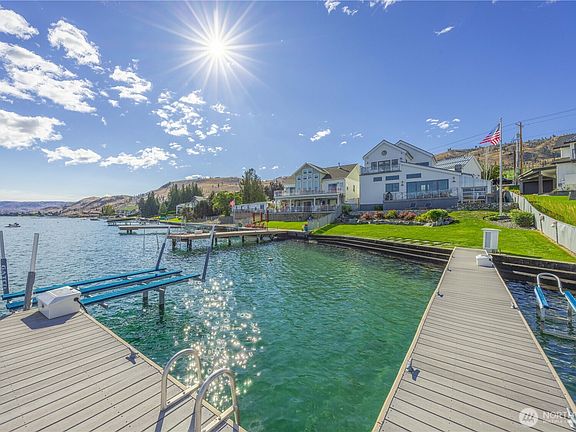 Considered one of the purest architectural designs on the sunny S. Shore of Lake Chelan, this MODERN COASTAL house offers 69ft of low-bank waterfront w/ a diverse landscape & patios for entertaining. Built in 2012, this 2-story 4bed/2.5bath, 2,614SF home + 209SF 1bed/1bath casita embodies breezy beach-inspired aesthetics & seamless layers of rustic wood & zinc elements. Interior invites you w/ soaring 20+ft ceilings, wide plank wood floors, statement lighting, Pella doors/windows, an airy & light-filled great room & a gorgeous chef's kitchen w/ high-end appliances, cabinets, a blend of granite,quartz,limestone counters & open concept pantry. Elegant Primary en-suite embraces a European-inspired wet room w/ floor-to-ceiling tile & balcony.