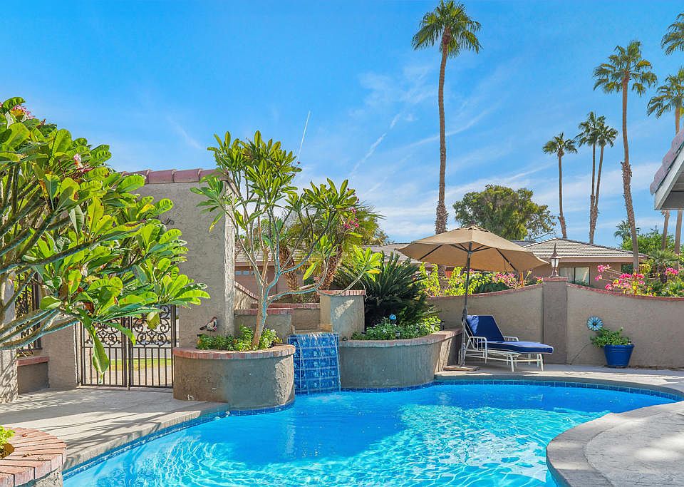 Priced to Sell! This fabulous Furnished home offers approximately 3,500 square feet of living space and features 3 bedrooms plus a bonus den & 3 1/2 bathrooms. Located on the #11 Fairway at Bermuda Dunes Country Club. This home offers tons of privacy with a front-loaded pool, an entertaining courtyard space, and an oversized backyard with the magnificent golf course and SW Mountain views! Enter through the colorful French doors and be greeted with ceramic wood-look tiles, oversized great room with vaulted ceilings, custom wood beams and large sliders with tons of natural light. The kitchen and bathrooms have been recently updated, providing a modern and inviting atmosphere. This home also features two primary bedrooms, allowing for versatile living arrangements.The spacious and well-designed interior of this home provides ample room for comfortable living. The kitchen has been  updated featuring stainless steel appliances, including a 6-burner commercial quality range and pot filler, coffee bar, slab granite counters, and a huge walk-in pantry. The bathrooms have also been renovated, offering a refreshing and spa-like experience.The outdoor areas of this property are equally impressive, with the west mountain views and golf course vistas providing a serene and picturesque backdrop. BD Security HOA of $214 a month includes basic cable & internet. IID for lower electric bills make this a perfect home for full time or seasonal! Resort living at its best.