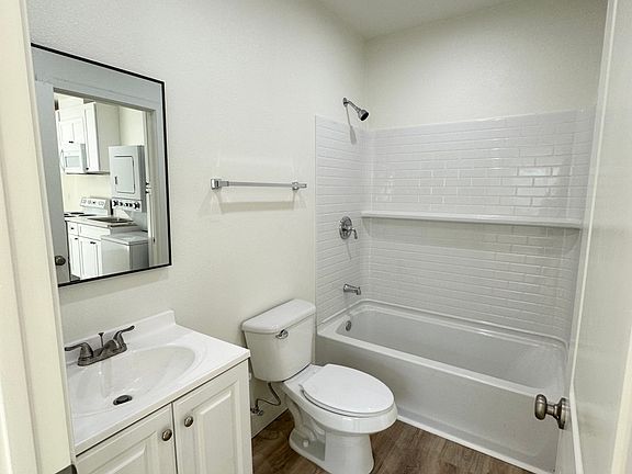 Discover modern living in this brand-new one-bedroom, one-bath unit with private entry and spacious patio. Inside, enjoy a contemporary kitchen featuring a stove, microwave, all new cabinets and quartz countertops, new luxury vinyl plank flooring, plus in-unit washer and dryer. The spacious bedroom and sleek bathroom offer comfort and style. Located near shopping, dining, and transit, this unit is perfect for convenient, comfortable living. This unit is newly constructed inside. *please be advised of virtual staging*